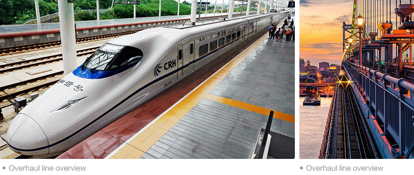The solution is compatible with the CRH2, CRH3 type EMU three or four, five maintenance, compatible with the CRH1 type EMU three maintenance. Covers the axle assembly line, wheel maintenance maintenance decomposition line, maintenance line, axle axle assembly line test, intelligent logistics system, information system maintenance, including disassembly, extraction, measuring dimension, rust, paint, cleaning, nondestructive testing, filling, lathing, pressing, resistance test, balance test, painting drying, running test, logistics, warehousing and other system equipment.
